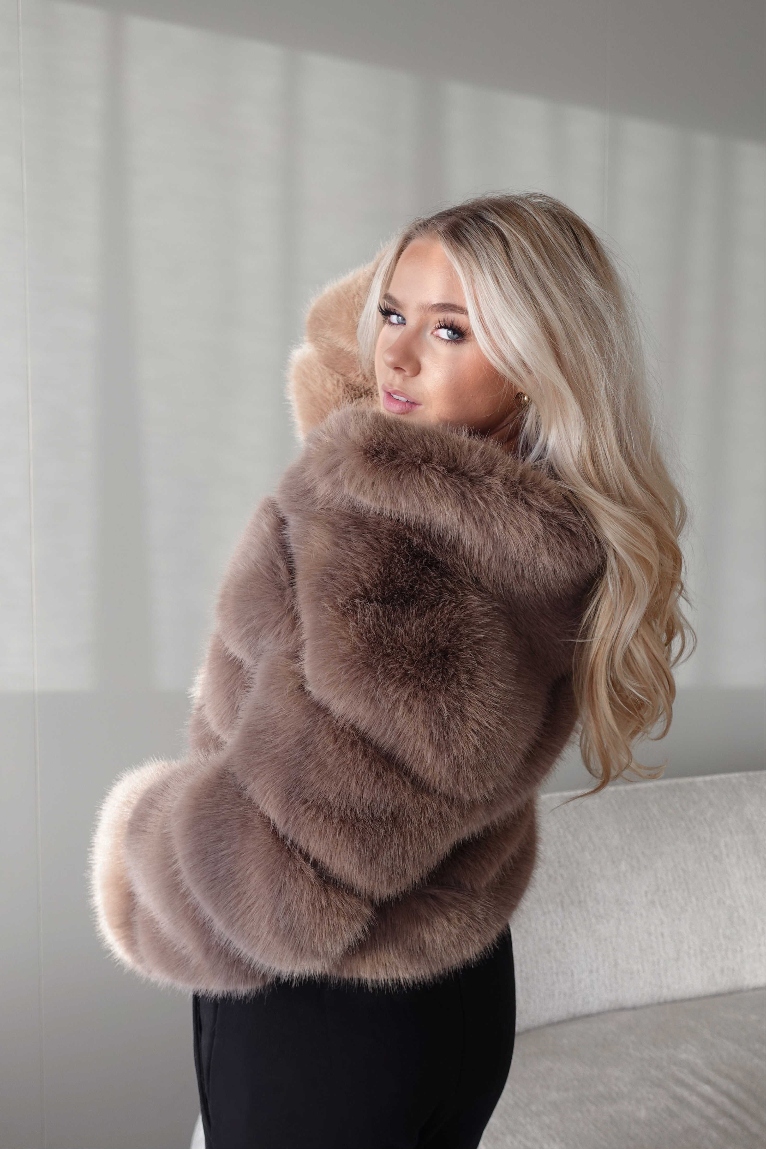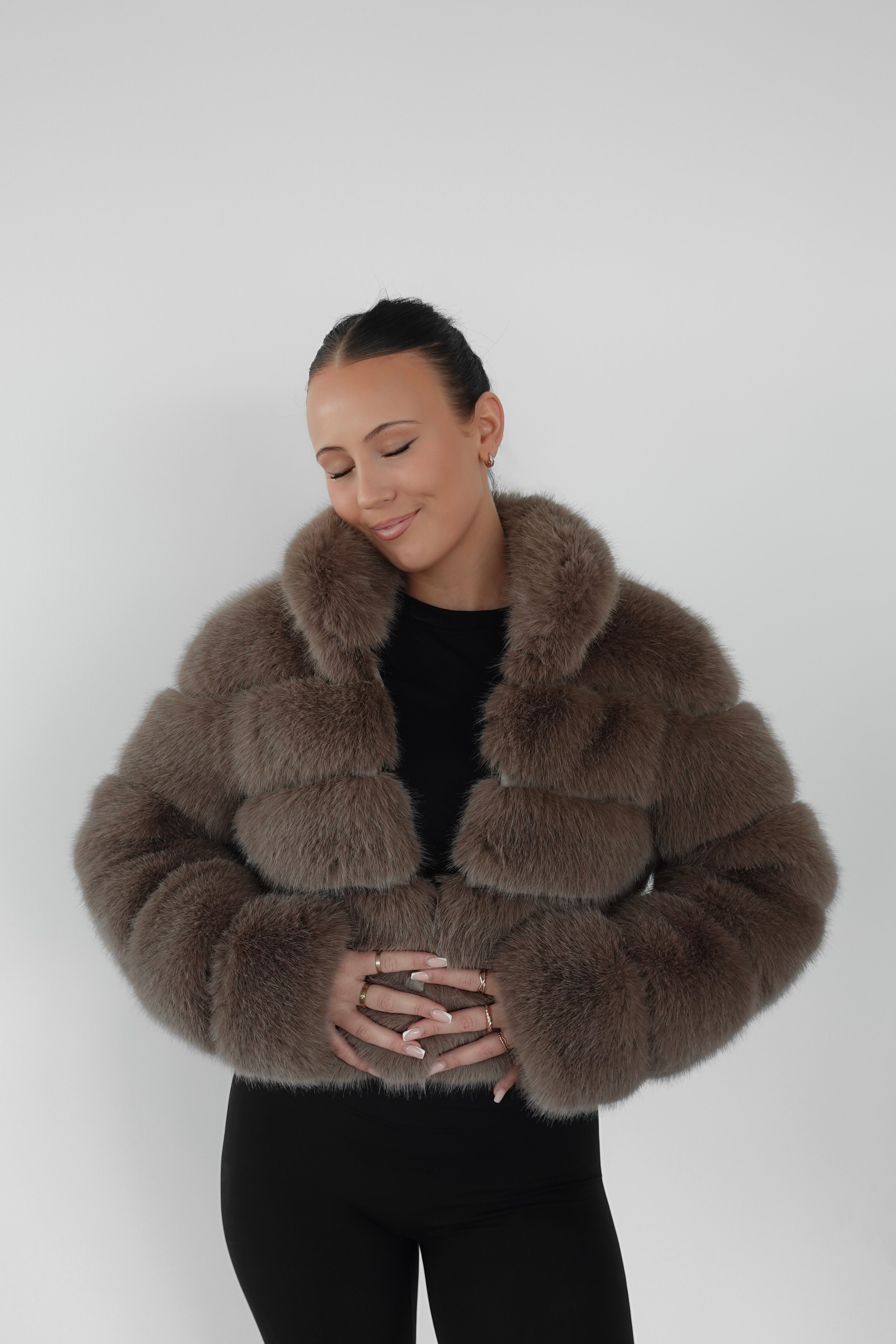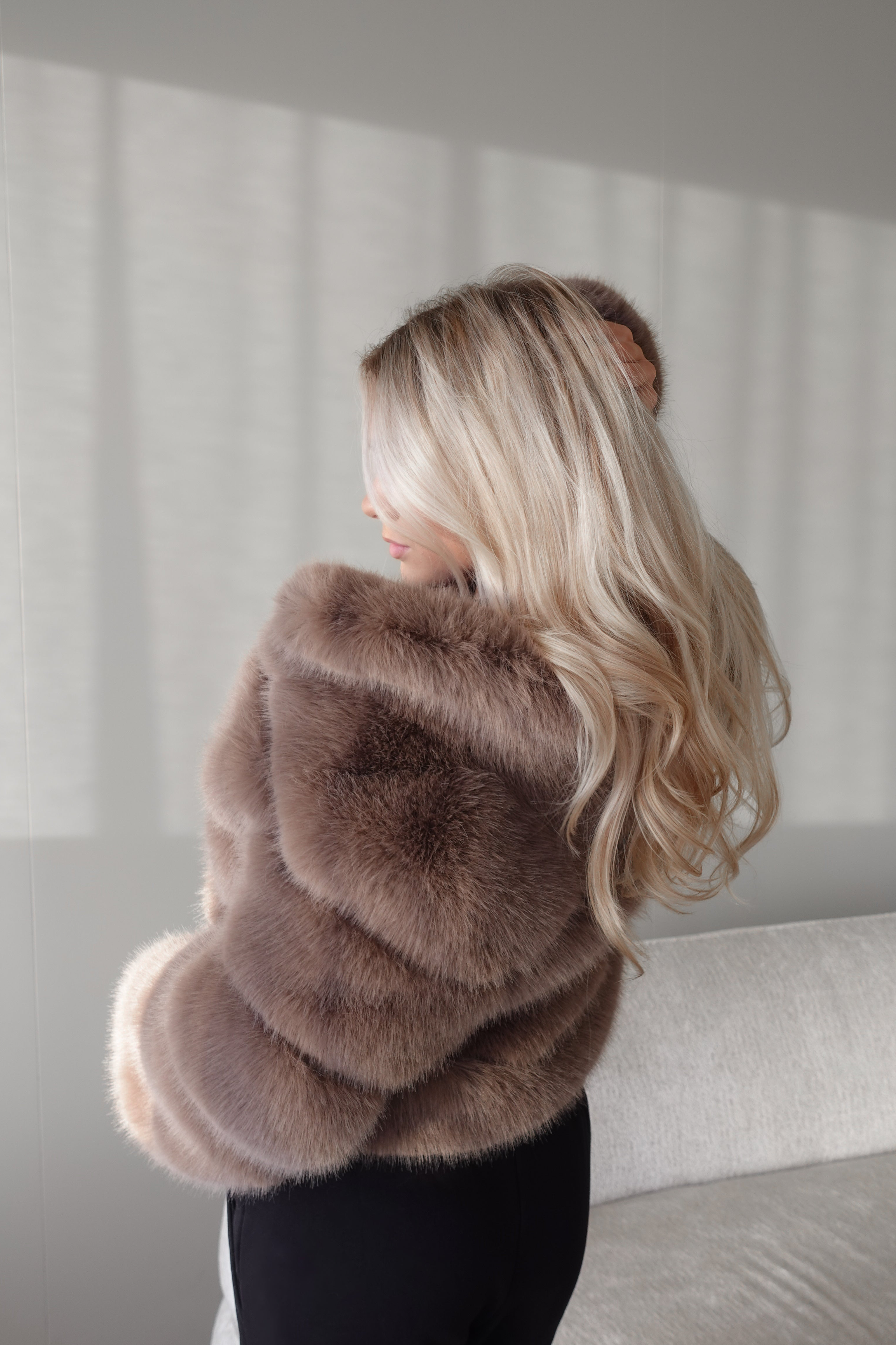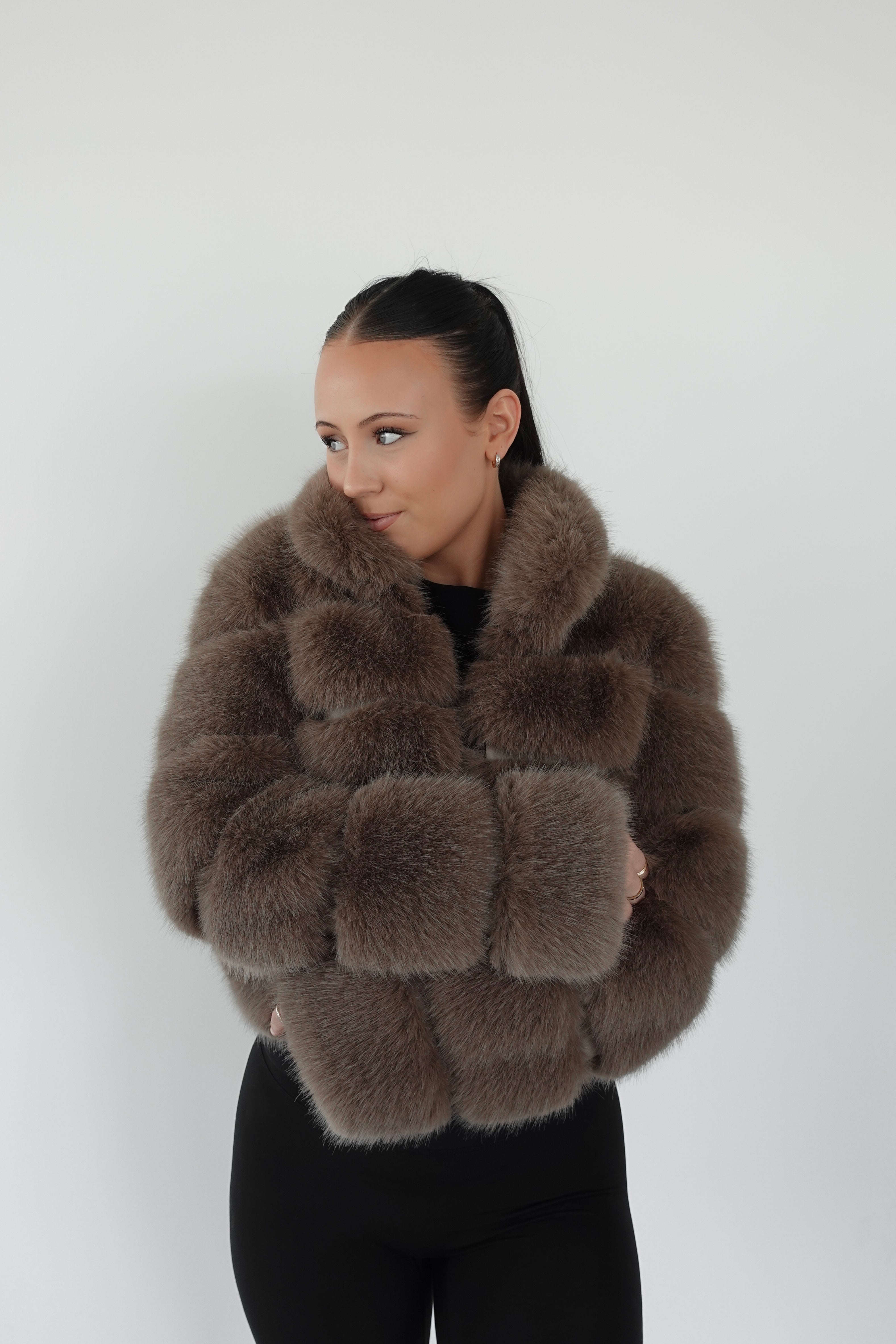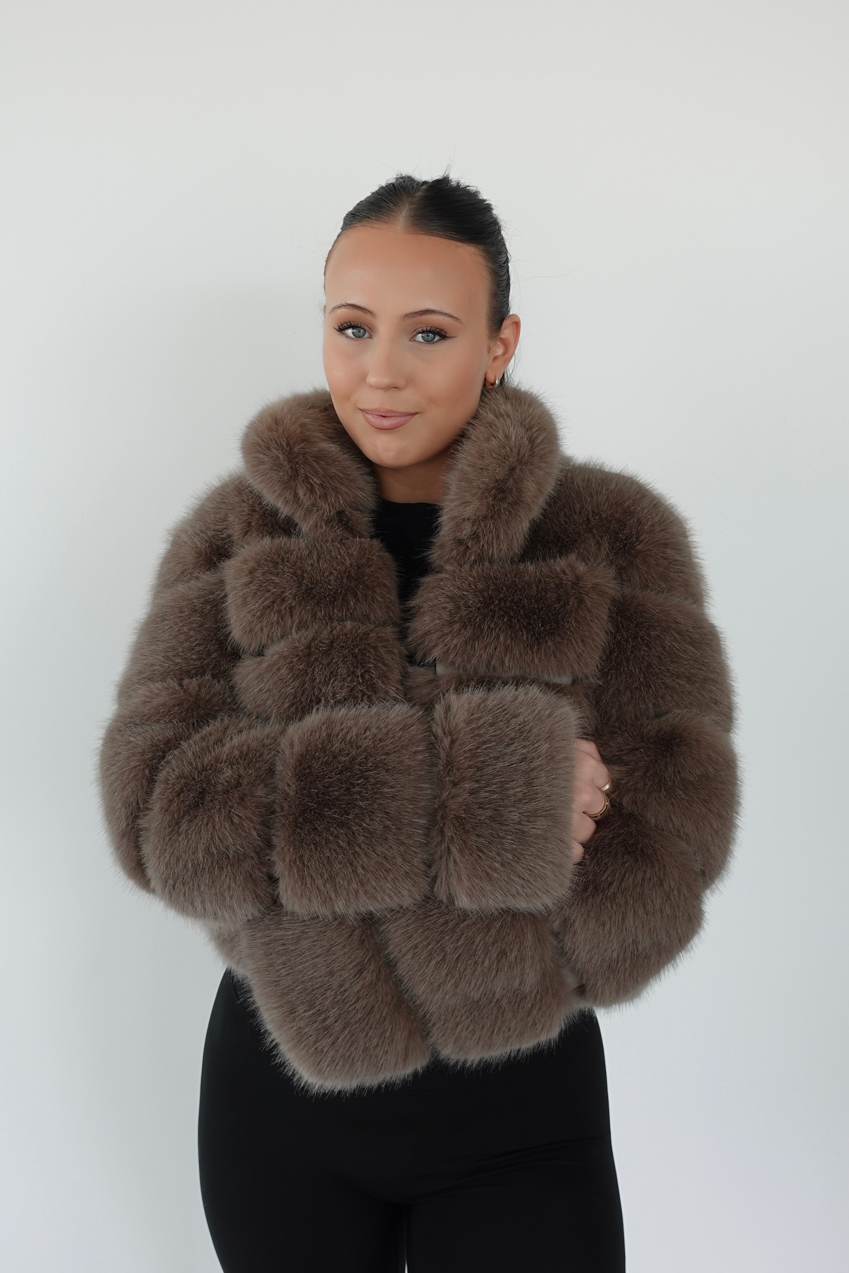 BROWN PREMIUM FAUX FUR JACKET